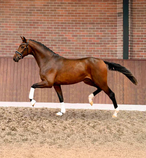 Hinsichtlich des Pedigrees gibt es diesbezüglich die allerbesten Voraussetzungen: Der Vater Diamond First, seines Zeichens Prämienhengst der Oldenburger Körung 2017, war unter Simone Pearce (AUS) 2021 qualifiziert zum Bundeschampionat des Deutschen Dressurpferdes und platzierter Teilnehmer der WM der sechsjährigen Dressurpferde in Verden.